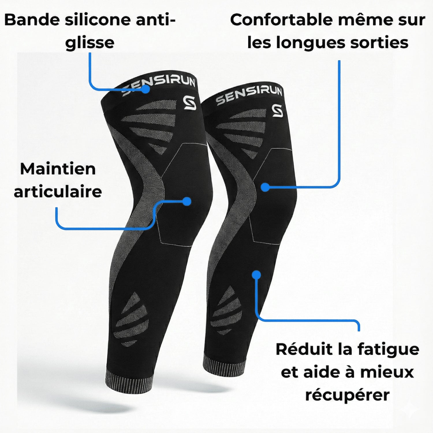 Grâce à sa compression ciblée, Sensirun réduit les gênes articulaires, améliore la stabilité et stimule la circulation sanguine pour une meilleure récupération.